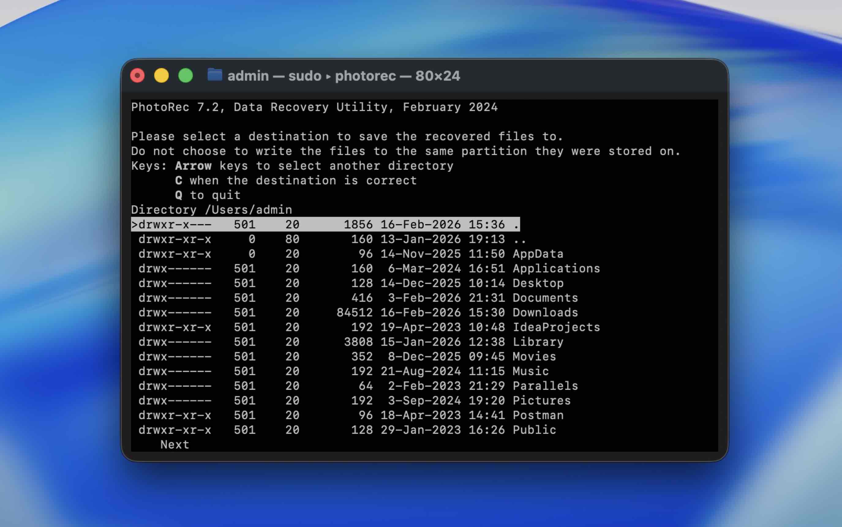 När verktyget har slutfört återställningsprocessen, avsluta Terminal och gå till den tidigare valda platsen för att hitta mappen med återställda data.